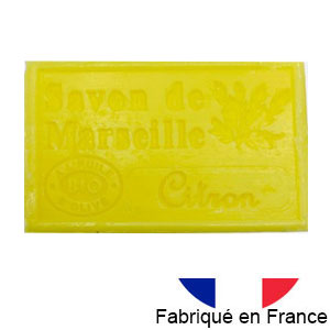 Marseille soap 125 gr. with vegetable oils and organic olive oil. 72% of oil. Perfume: Lemon.