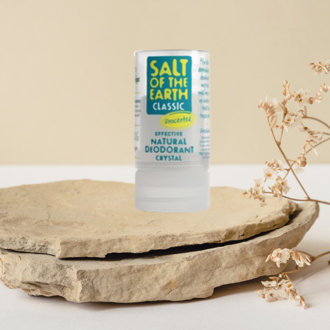 The Salt of the Earth crystal deodorant is made of pure Potassium Alum, a natural mineral salt that has been used as a deodorant for hundreds of years.